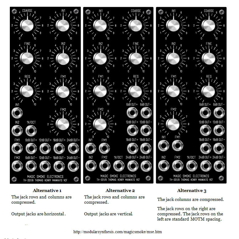 | DJB panels | 2U Mankato VCF module |  | Alternatives with compressed jack spacing |